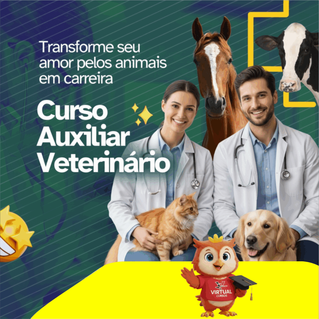 O Curso de Auxiliar Veterinário prepara profissionais para atuar em clínicas, hospitais e pet shops, oferecendo suporte a médicos veterinários e cuidados diretos aos animais. Durante a formação, o aluno aprende sobre anatomia, fisiologia, primeiros socorros, manejo, higiene, contenção e administração de medicamentos, além de rotinas clínicas e atendimento ao cliente. É uma excelente oportunidade para quem ama animais e deseja ingressar no mercado pet, uma área em constante crescimento.